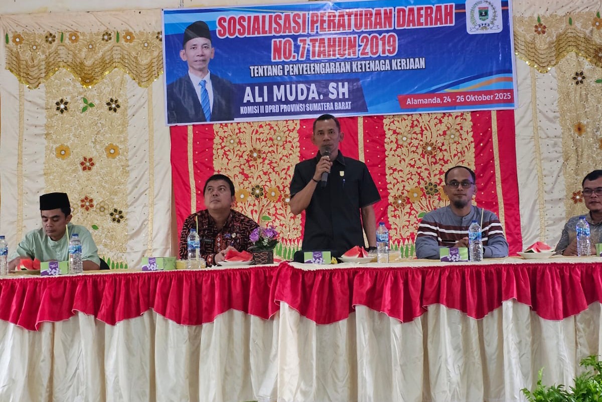 “Banyak perusahaan yang bergerak di bidang perkebunan di Pasaman Barat sehingga berpeluang besar dalam penyerapan tenaga kerja lokal,” ujar Ali Muda saat menggelar Sosialisasi Peraturan Daerah (Perda) Nomor 7 Tahun 2019 tentang Penyelenggaraan Ketenagakerjaan di Gedung Serbaguna Jorong Bunuik Raya, Nagari Bunuik, Kecamatan Kinali, Kabupaten Pasaman Barat, Jumat (24/10/2025).
