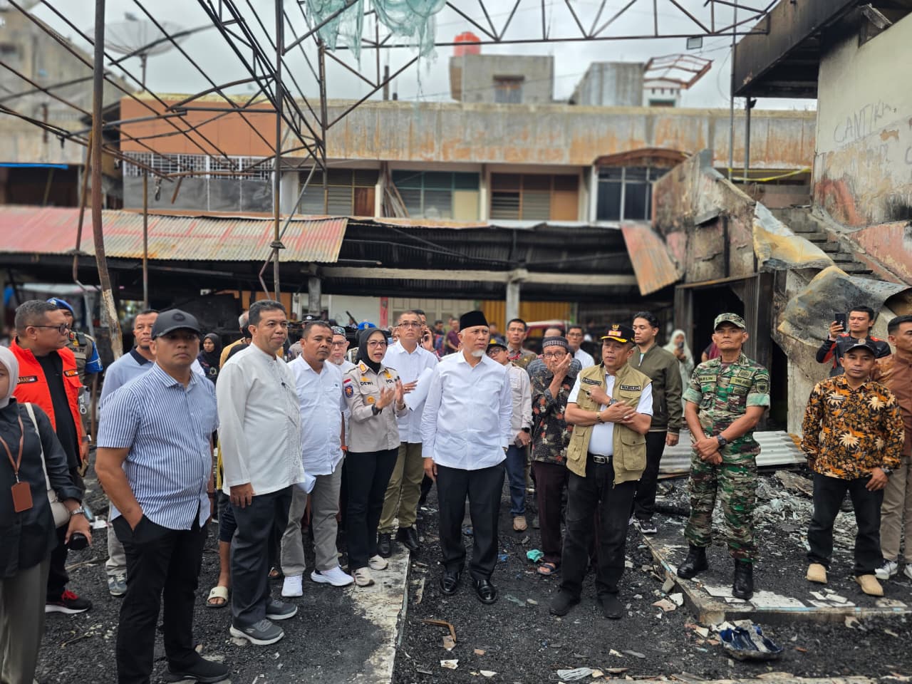 Payakumbuh, Khazminang.id – Gubernur Sumatera Barat, Mahyeldi Ansharullah meninjau langsung lokasi kebakaran di Pasar Payakumbuh, Jumat (29/8/2025). Kebakaran yang terjadi pada Selasa (26/8) itu, menyebabkan ratusan toko dan lapak pedagang terdampak.