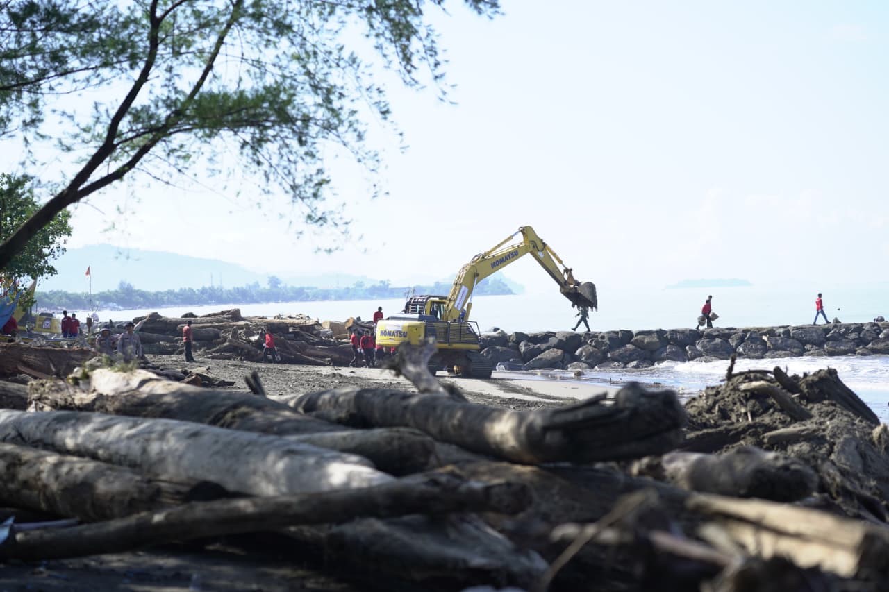 Pagi itu, Pemerintah Provinsi Sumatera Barat (Pemprov Sumbar) bersama Kementerian Kehutanan menggelar aksi gotong royong. Setelah banjir bandang beberapa waktu lalu, pantai itu terlihat tak terawat karena dipenuhi oleh material kayu dan sampah yang dibawa arus sungai.