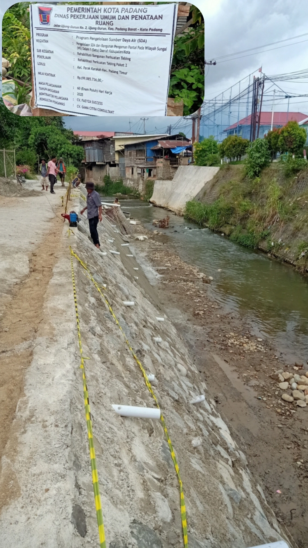 Rehabilitasi perkuatan tebing di sepanjang aliran sungai yang membentang di Kel. Parak Karakah, Kec. Padang Timur itu, sebelumnya memang sudah cukup lama disuarakan warga. Selain sudah dipenuhi semak belukar, fisik tebing yang sudah retak dan hancur di beberapa bagian, diakui menjadi ancaman ketika debit air sungai meningkat saat musim hujan.