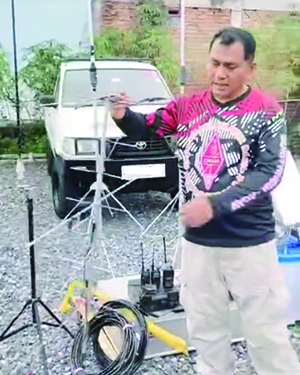 Ada juga kami persiapkan radio HF, antenna mobile, antenna basecamp. Kami juga dalam pelaporan kebencanaan menggunakan satelit untuk berkomunikasi dengan station satelit di Jakarta. Inilah semua peralatan yang kami gunakan pada tanggap darurat untuk CORE (Communication in Rescue and Emergency)-YHi5AK, ucap Suhardedi-YB5DDE.