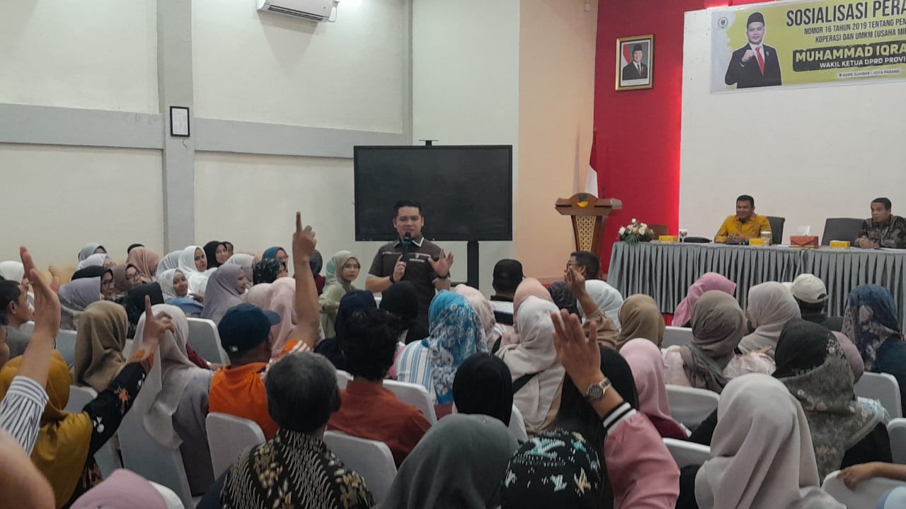 Wakil Ketua DPRD Sumbar Muhammad Iqra Chissa Putra sedang melakukan sosialisasi Perda Nomor 16 Tahun 2019 tentang Pemberdayaan dan Perlindungan Koperasi dan UMKM