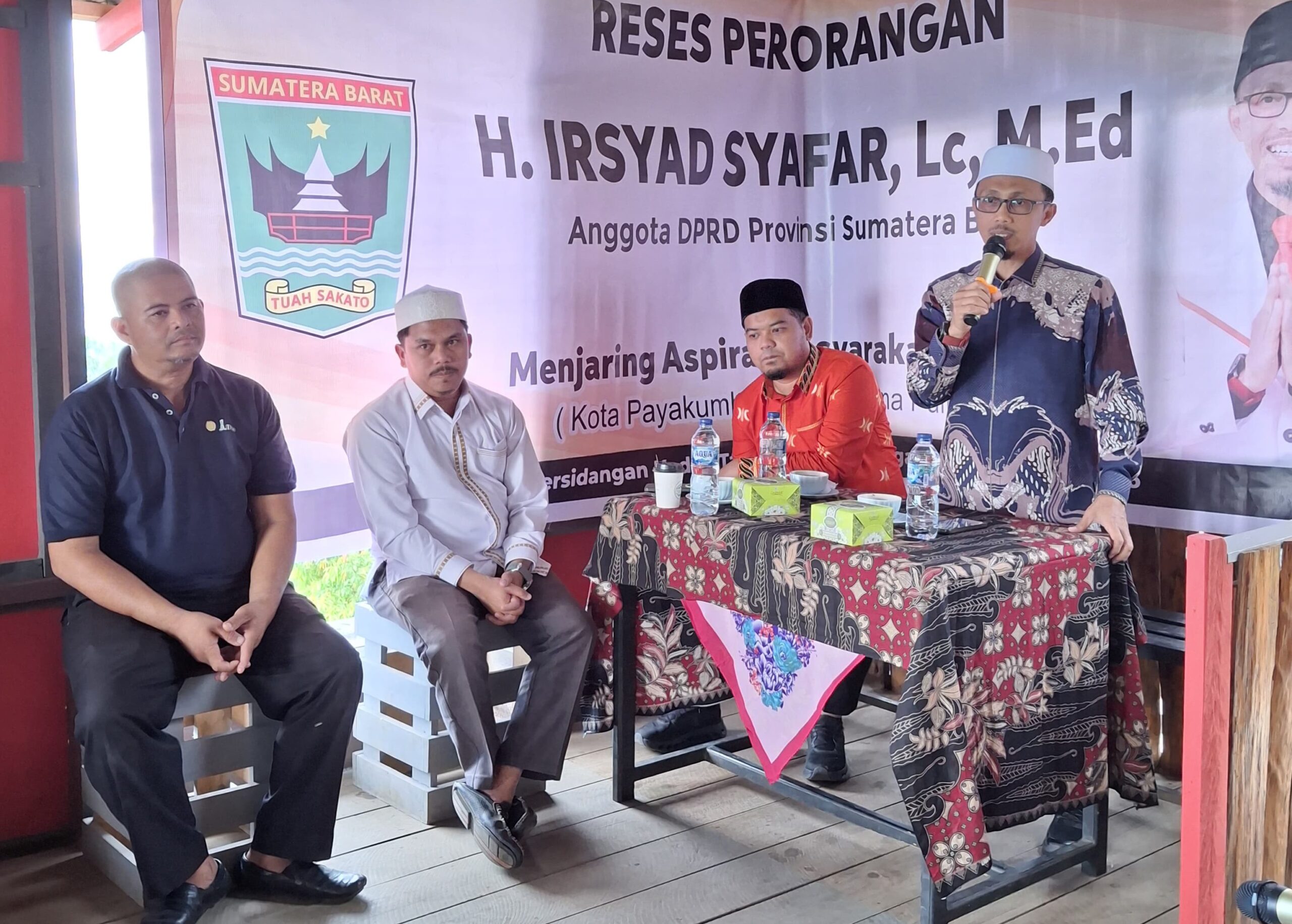 Sarilamak, Khazminan.id – Anggota DPRD Provinsi Sumatera Barat, Irsyad Syafar menggelar kegiatan reses perseorangan di Cafe Jingga, Jorong Subaladung, Nagari Sungai Kamuyang, Kecamatan Luak, Kabupaten Limapuluh Kota, Minggu sore (8/2/2026).