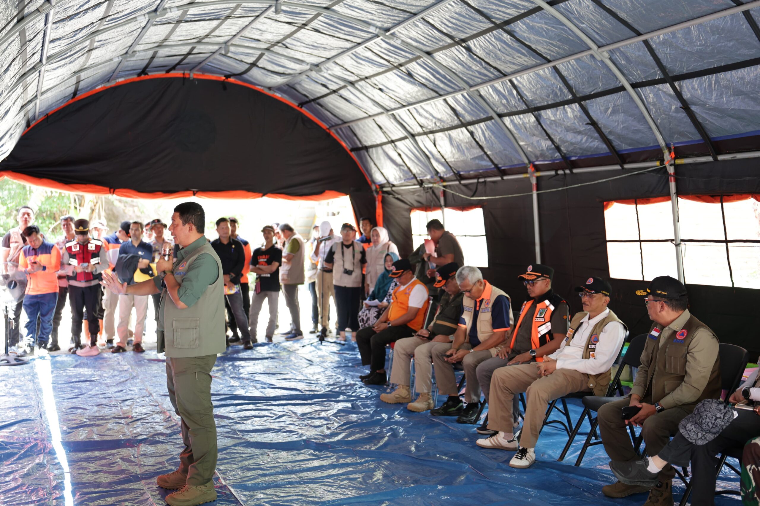 Suharyanto tiba di lokasi sekitar pukul 10.30 WIB, langsung menuju lokasi pengunsian dan berdialog bersama warga untuk mendengarkan aspirasi sekaligus membahas penyediaan rumah hunian sementara bagi warga yang kehilangan tempat tinggal akibat bencana.