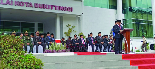 Wali Kota Bukittinggi, H.M.Ramlan Nurmatias, SH sebagai inspektur upacara saat memberikan sambutan