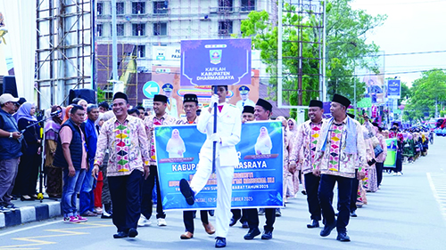 Kontingen kafilah Kabupaten Dharmasraya saat melintasi podium kehormatan