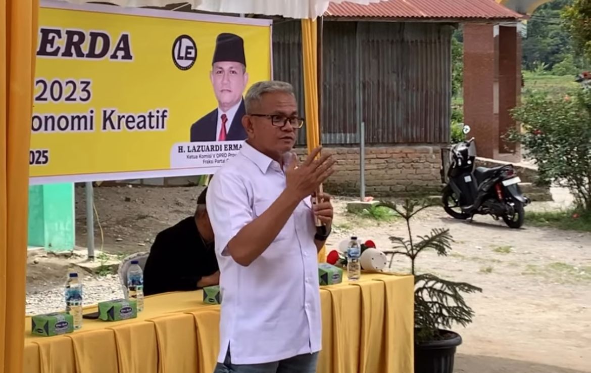 Matur, Khazminang.id – Ketua Komisi V DPRD Sumbar, Lazuardi Erman menggelar Sosialisasi Peraturan Daerah (Perda) No. 2 Tahun 2023 tentang Pengembangan Ekonomi Kreatif di Matur, Kabupaten Agam, Minggu (24/8/2025).