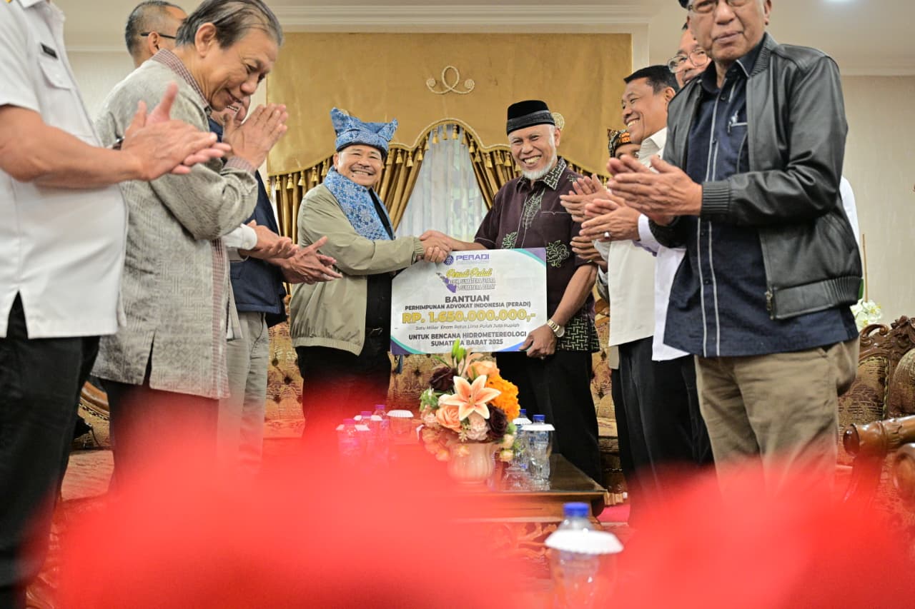Bantuan tersebut diserahkan langsung oleh Ketua Umum PERADI, Otto Hasibuan yang juga menjabat sebagai Wakil Menteri Koordinator Bidang Hukum, Hak Asasi Manusia, Imigrasi, dan Pemasyarakatan (Wamenko Kumham Imipas) kepada Gubernur Sumbar Mahyeldi Ansharullah di VIP Bandara Internasional Minangkabau, Selasa (1/4/2026).
