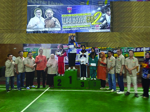 Hasil akhir kejuaraan tenis meja Walikota Cup ke 2 tahun 2025, tingkat SD putra, juara 1 Affan (SD 01 Benteng Kota Bukittinggi), juara 2 Farhan (SD 03 Pakan Kurai Kota Bukittinggi), juara 3 Alexan Fabiano (SD Fransiskus Kota Bukittinggi) dan Devandra Jalal (SD Excellent Kota Bukittinggi). Tingkat SD putri, juara 1 Azizah Zahra (SDIT Lubuk Basung Kabupaten Agam), juara 2 Puti Zivara (SD Excellent Kota Bukittinggi), juara 3 Yumna Zakia (SD 03 Pakan Kurai Kota Bukittinggi) dan Elfita Sari (SKB Kota Bukittinggi).