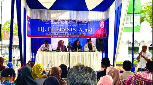 Bukittinggi, khazminang.id- Hj.Efianis.Amd Anggota Dewan Perwakilan Rakyat Daerah (DPRD) Kota Bukittinggi Daerah pemilihan (Dapil) Kecamatan Mandiangin Koto Selayan (MKS) melakukan reses perorangan masa sidang I tahun 2025/2026 di Simpang Tiga Panganak Kelurahan Puhun Pintu Kabun Kecamatan MKS, Jumat (19/12/2025) dihadiri Camat MKS, Lurah Puhun Pintu Kabun, Organisasi Perangkat Daerah (OPD), RW, RT dan ratusan warga masyarakat.