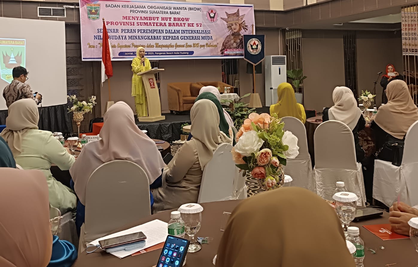 Kegiatan ini digelar dalam rangkaian menyambut HUT ke-57 BKOW Sumbar yang jatuh pada 17 Oktober 2025 mendatang. Seminar yang diikuti sekitar 85 peserta yang terdiri dari pengurus BKOW Sumbar dan GOW kabupaten/kota se-Sumbar ini, mengusung harapan agar organsiasi perempuan dapat memainkan perannya dalam mempersiapkan generasi emas 2045 yang berbudaya.