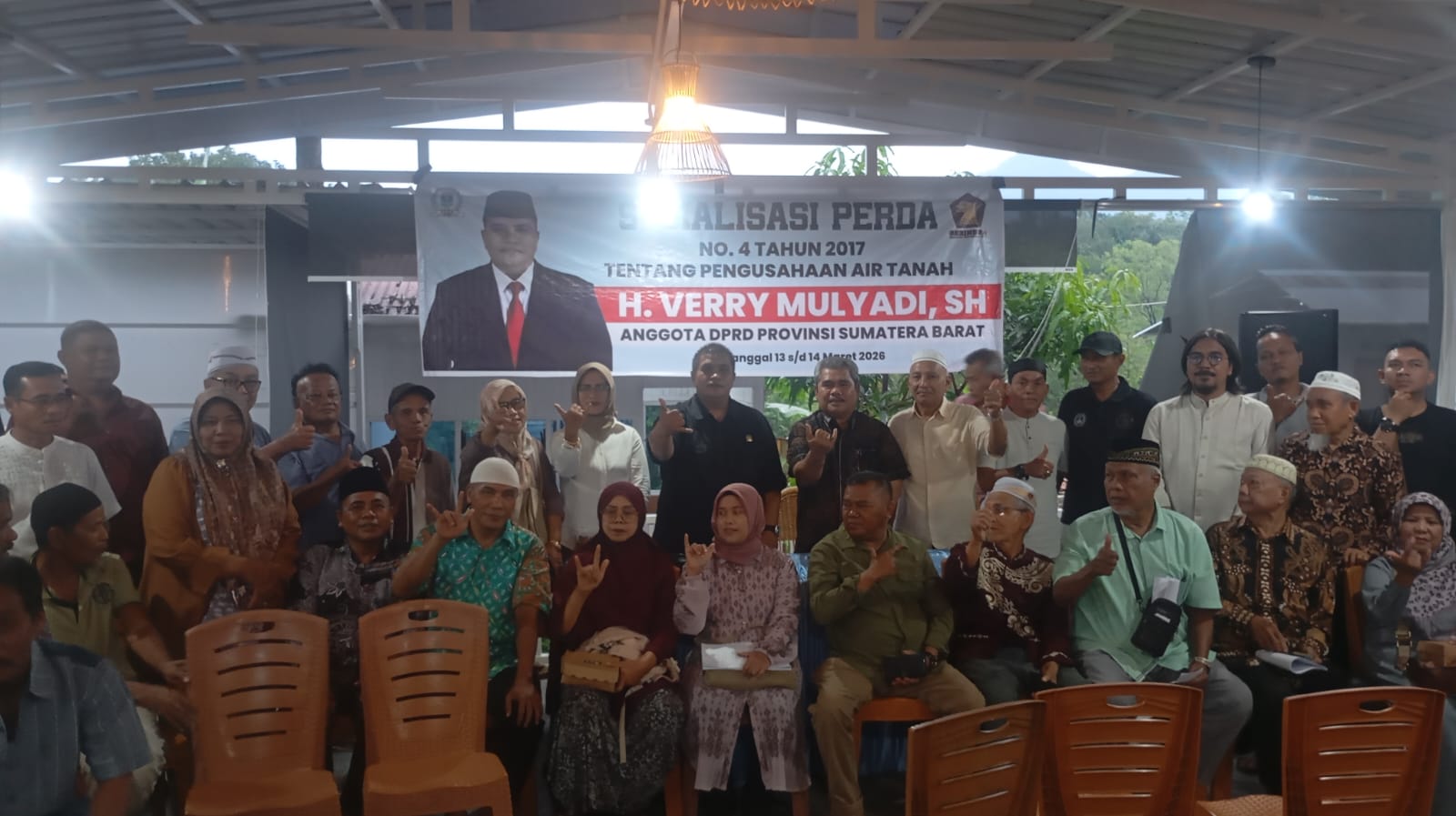 Padang, Khazminang.id  – Sekretaris Komisi IV DPRD Provinsi Sumatera Barat Verry Mulyadi menggelar sosialisasi Perda Nomor 4 Tahun 2017 tentang Pengusahaan Air Tanah kepada masyarakat Lubuk Kilangan di Pondok Putih Padayo Agro Lubuk Kilangan, Sabtu (14/3/2026)