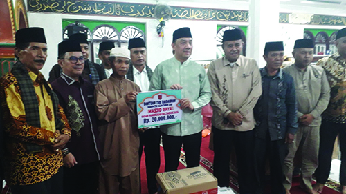 Di akhir sambutannya Muhammad Iqbal memberikan bantuan uang sebesar dua puluh juta rupiah dan lima puluh kain sarung.