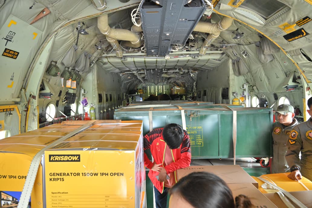Bantuan Presiden yang tiba di Sumbar diangkut menggunakan pesawat Hercules A-1339 TNI AU, berisi antara lain tenda, alat penunjang peralatan komunikasi, genset, perahu karet, serta paket makanan cepat saji. Seluruh logistik tersebut diturunkan dan langsung dipindahkan menuju jalur distribusi kabupaten/kota.
