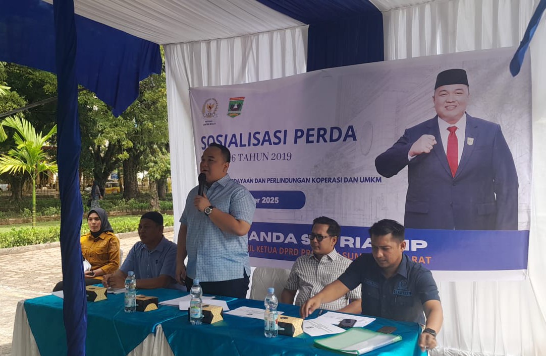 Padang, Khazminang.id — Wakil Ketua DPRD Provinsi Sumatera Barat Nanda Satria menggelar Sosialisasi Peraturan Daerah (Sosper) Nomor 16 Tahun 2019 tentang Pemberdayaan dan Perlindungan Koperasi dan UMKM di Halaman Museum Adityawarman, Belakang Tangsi Kota Padang, Sabtu (25/10/2025).