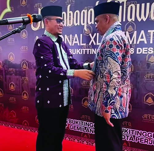 Rombongan kafilah Kabupaten Kota se Sumatera Barat pada proses pendaftaran hari pertama ini, Jumat (12/12/2025) disambut langsung oleh Wakil Wali Kota Bukittinggi, Ibnu Asis, S.TP bersama Kepala Kantor Kementerian Agama Kota Bukittinggi, Eri Iswandi. Prosesi penyambutan diawali dengan pengalungan sal, sebagai simbol doa, keselamatan dan harapan agar seluruh kafilah mendapatkan kelancaran serta kesuksesan dalam mengikuti seluruh rangkaian MTQ Nasional ke-41.