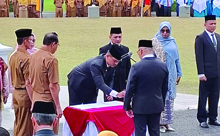 Bukittinggi, khazminang.id- Proses mutasi dan rotasi kembali bergulir di lingkungan Pemerintah Kota Bukittinggi, sebanyak 19 orang pejabat dilantik dan diambil sumpahnya di lapangan Balaikota, Senin (27/10/2025). Pejabat yang dilantik itu terdiri dari 7 orang eselon III, 8 orang eselon IV dan 4 orang pejabat fungsional.