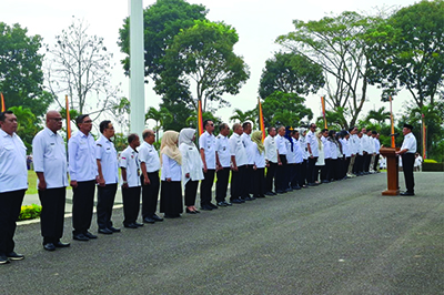 Ramlan Nurmatias juga menekankan kembali kedisiplinan para pegawai yang harus ditingkatkan. Banyak tugas menunggu untuk segera diselesaikan. “Amanah yang diberikan harus dipikul dengan penuh tanggung jawab. Kuncinya disiplin, jangan pelihara kebohongan. Mari tingkatkan semangat bekerja dengan jujur,” pesannya.