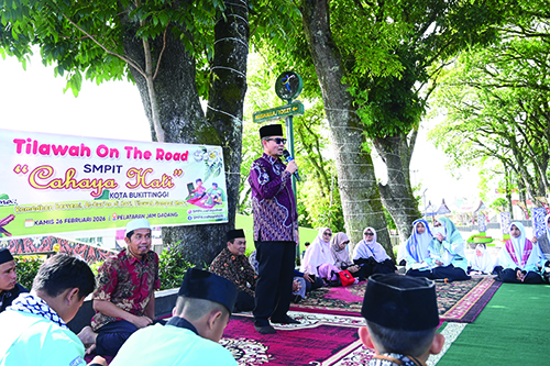 Bukittinggi, khazminang.id- Wakil Wali Kota Bukittinggi, Ibnu Asis, S.TP., membuka secara resmi kegiatan Tilawah On The Road yang digelar Sekolah Menengah Pertama Islam Terpadu (SMPIT) Cahaya Hati Kota Bukittinggi di Pedestrian Taman Jam Gadang, Rabu (26/2/2026) dihadiri kepala sekolah serta jajarannya, Komite sekolah dan ratusan siswa SMPIT Cahaya Hati.